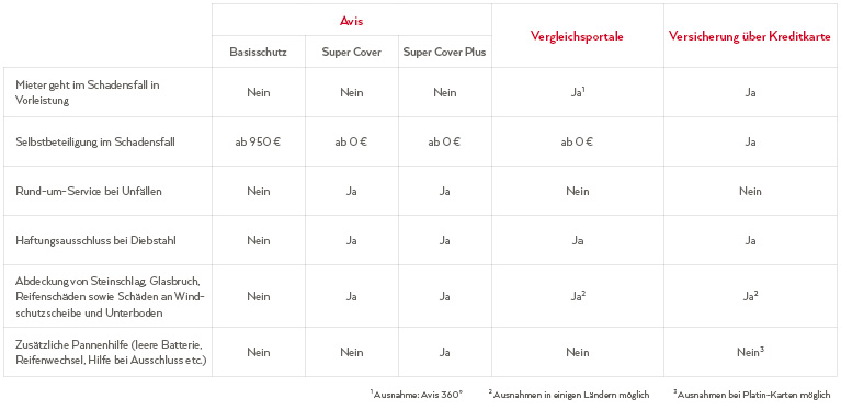 So unterscheiden sich die Schutzoptionen der Avis Autovermietung von den Versicherungen der Vergleichportale und Kreditkartenanbieter